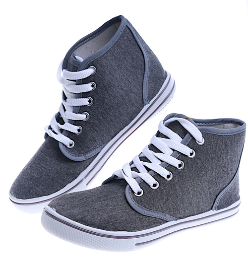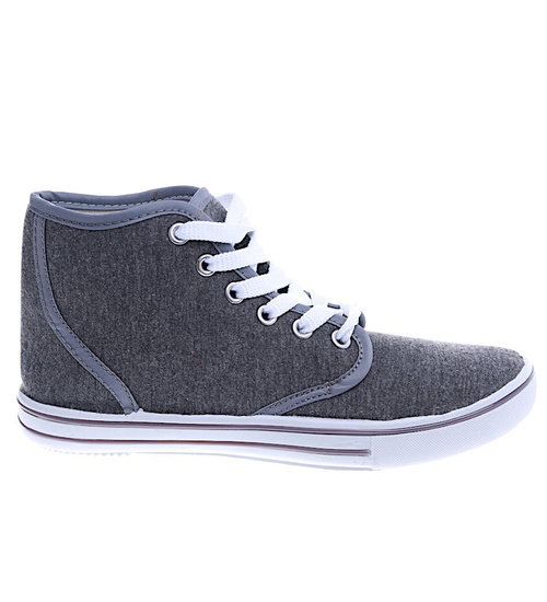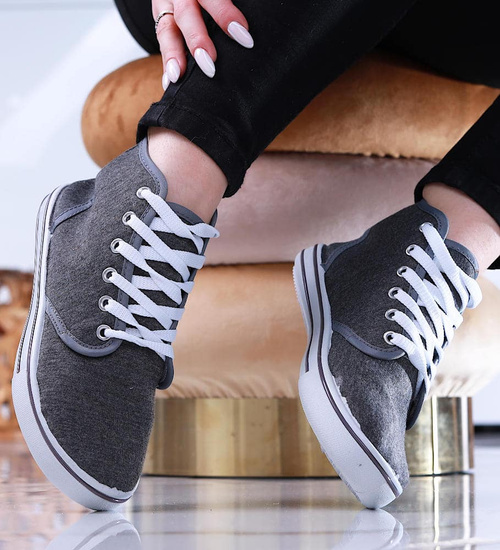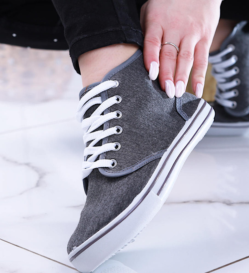 - Komfortowee damskie trampki z wysoką cholewką wykonane z miękkiej tkaniny w kolorze szarym.