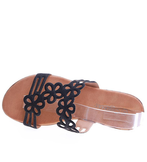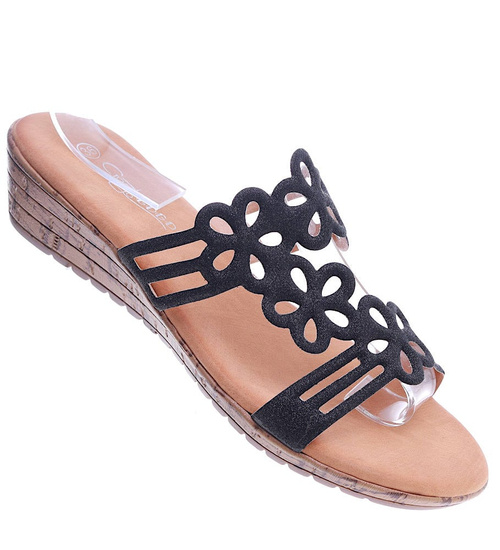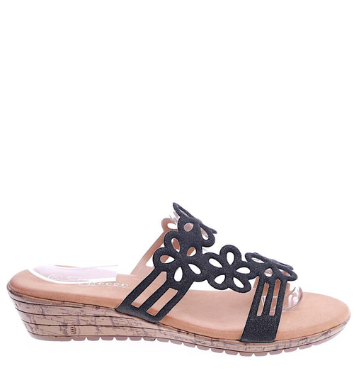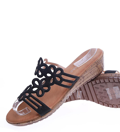 Czarne klapki na niskim koturnie /A9-3 13936 T138/