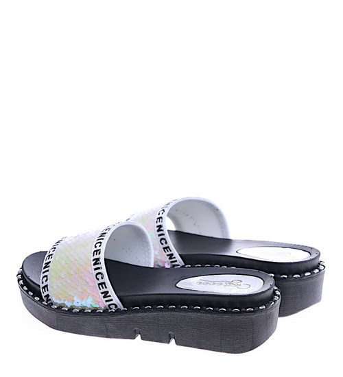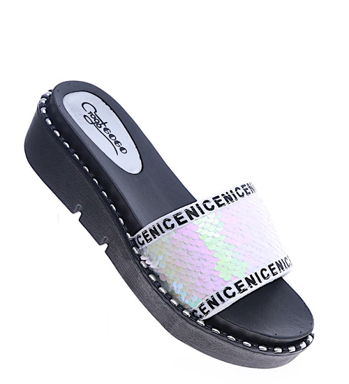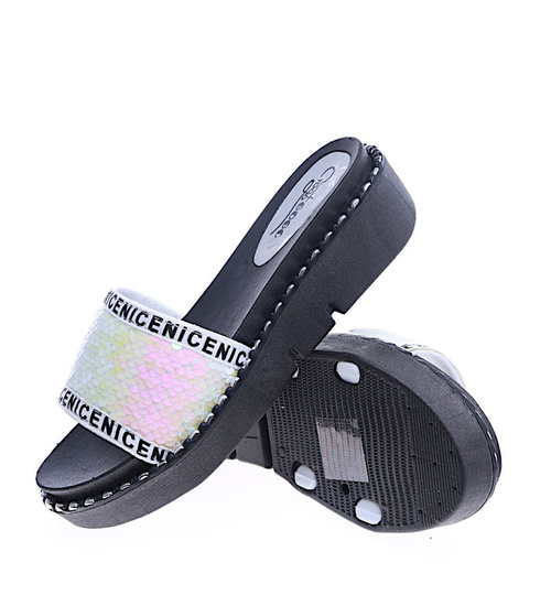 Czarne klapki na niskim koturnie /F1-2 13937 T290/