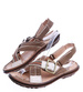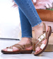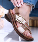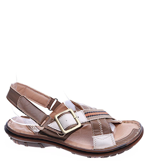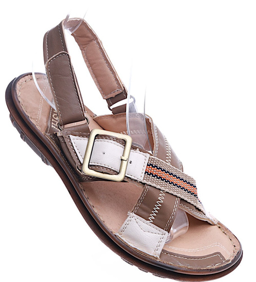 - Modne damskie sandały wykonane z miękkiej skórki ekologicznej w kolorze beżowym.