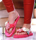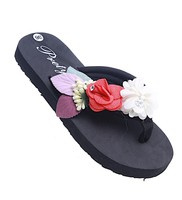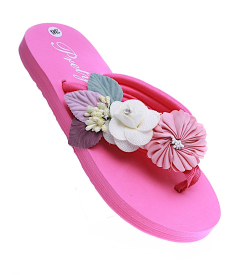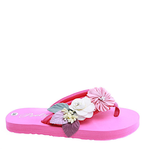 - Klapki zostały ozdobione kolorowymi kwiatami.