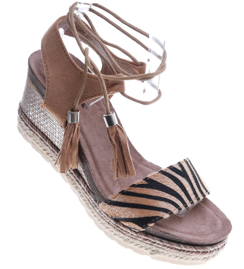 Sandały na koturnie i platformie Zebra /E3-2 14049 S290/
