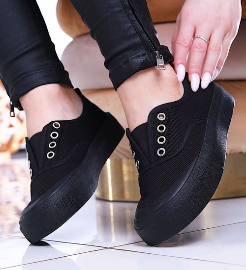 Czarne wsuwane trampki na platformie /C7-3 14073 S260/