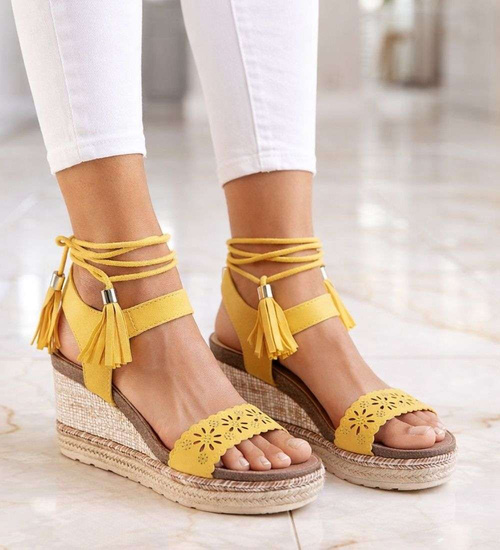 Sandały na koturnie i platformie Żółte /D3-3 14050 S290/