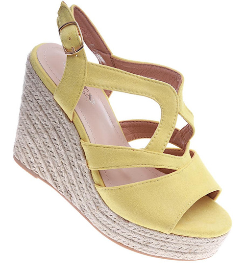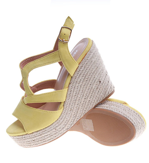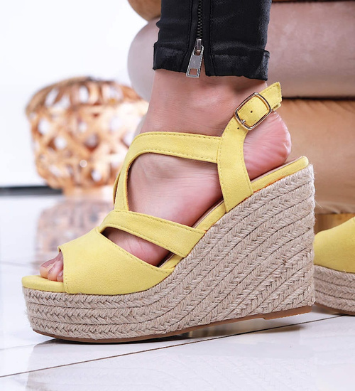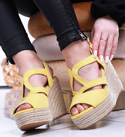 Żółte sandały na koturnie i platformie /A9-2 14061 S294/