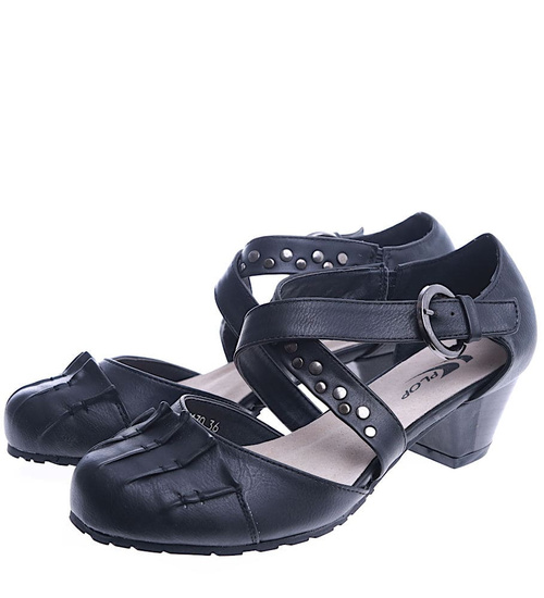 Czarne czółenka z paseczkiem na niskim obcasie /B4-2 14129 T143/