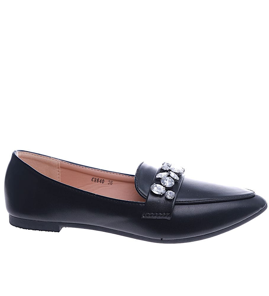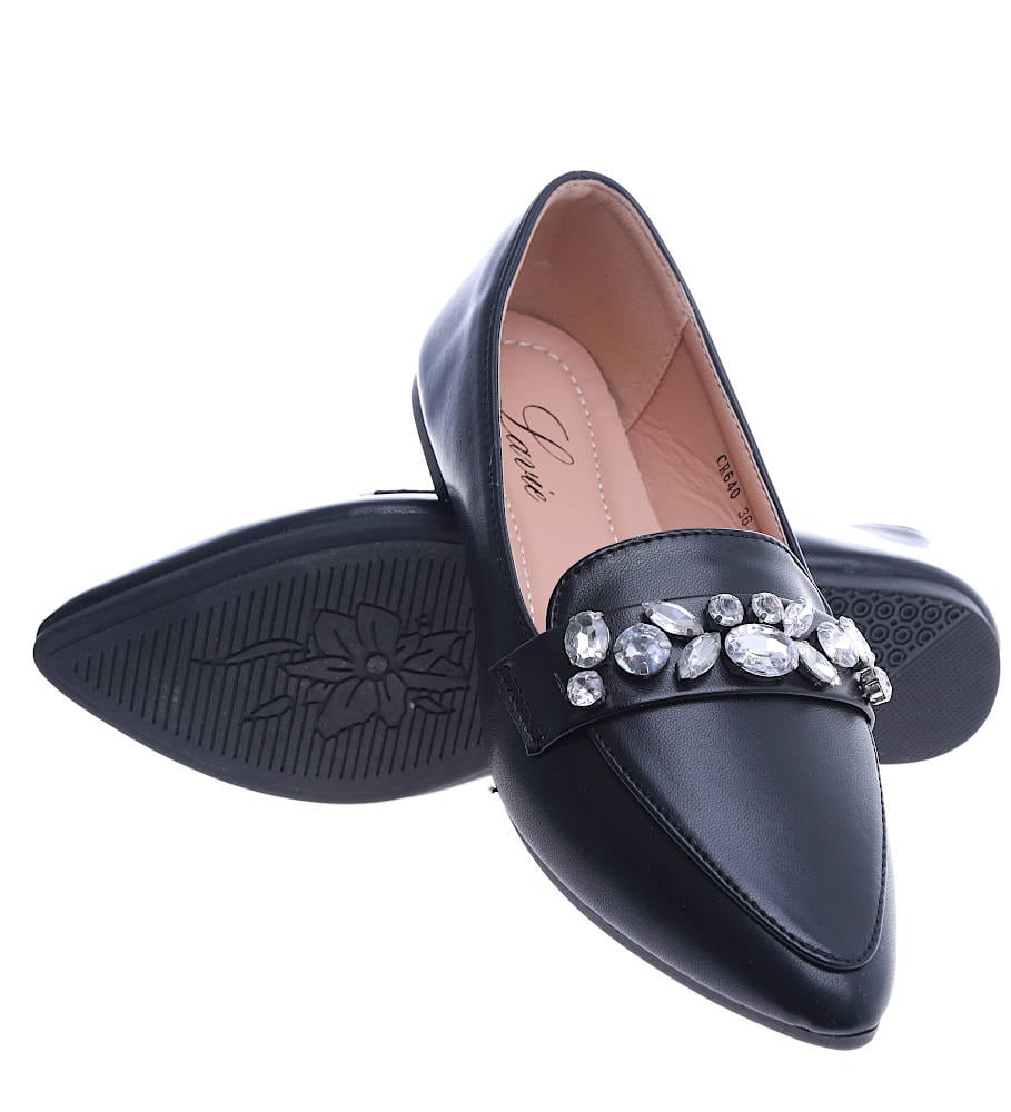 Czarne balerinki lordsy z kamieniami /D7-1 14108 T2/