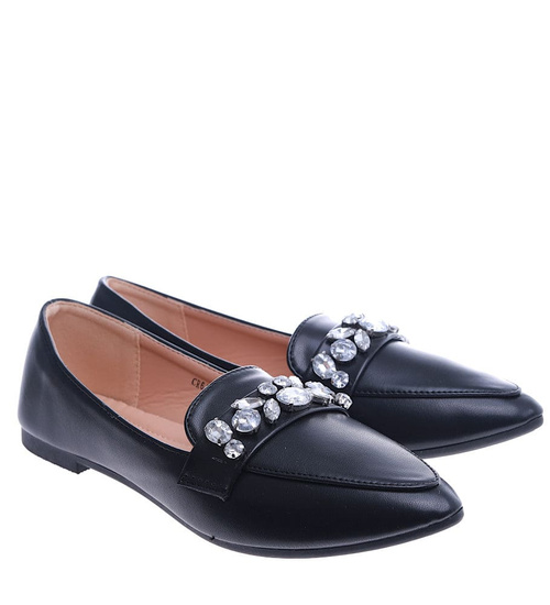 Czarne balerinki lordsy z kamieniami /D7-1 14108 T2/