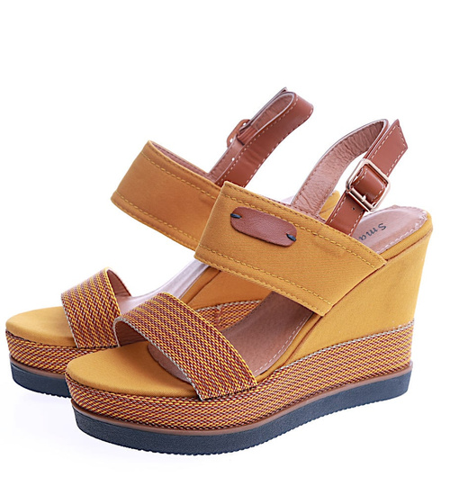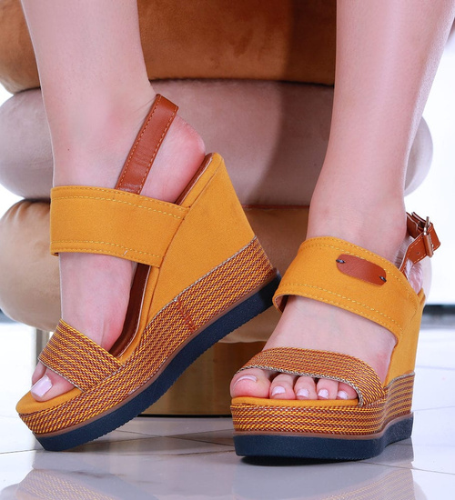 Żółte damskie sandały na obcasie i platformie /H2-B1-2 14110 S197/