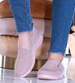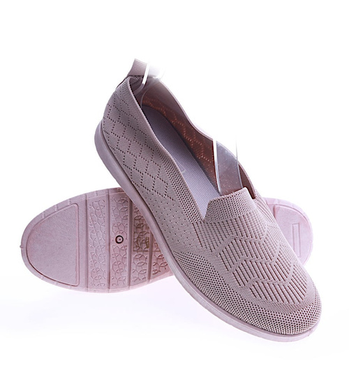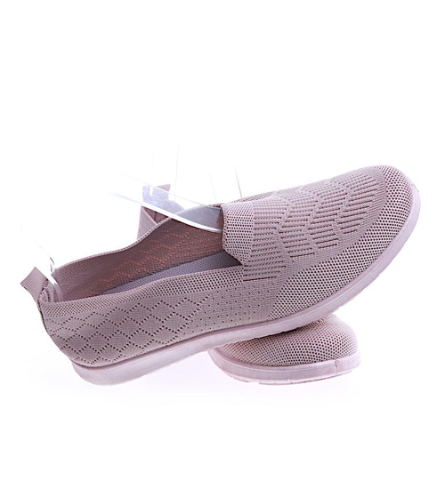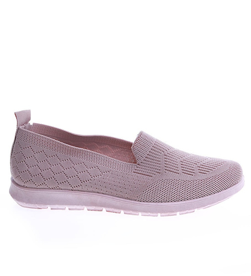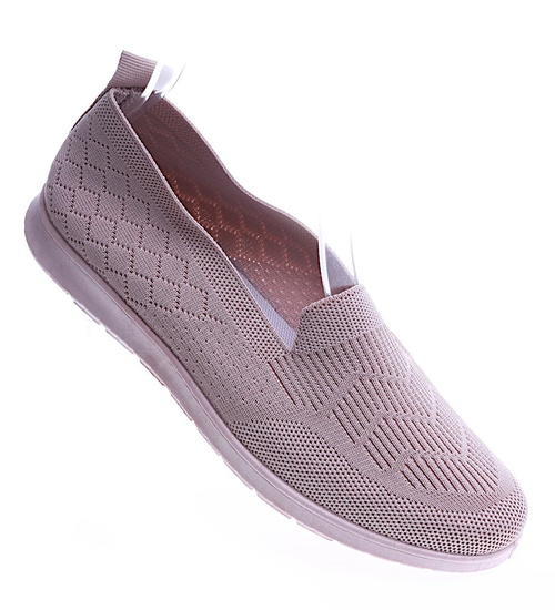 • Komfortowe damskie buty sportowe wykonane z miękkiego materiału w kolorze brudnego różu.
