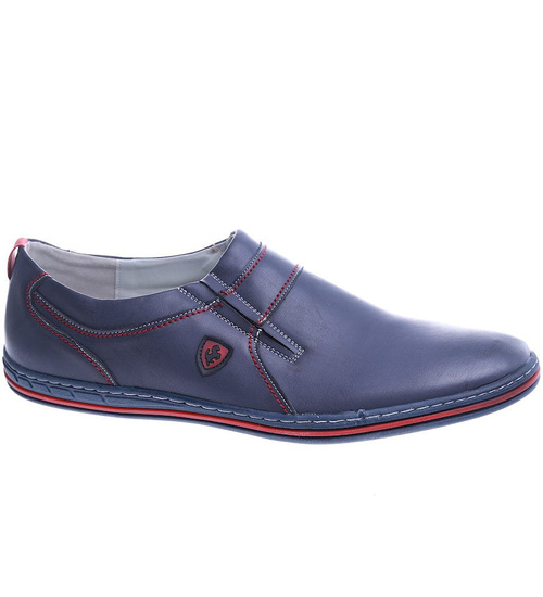 - Granatowe męskie półbuty wykonane z miękkiej, ekologicznej skóry.