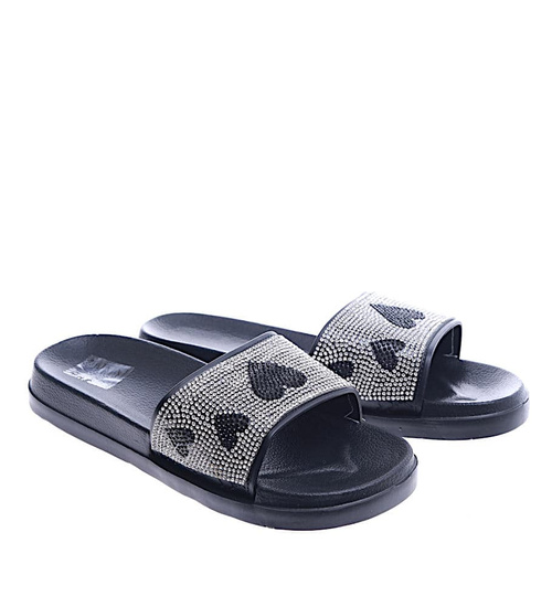 - Model z bardzo ciekawym wzorkiem z srebrnymi cyrkoniami i dodatkowymi serduszkami wzbogacają wygląd obuwia.