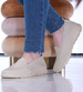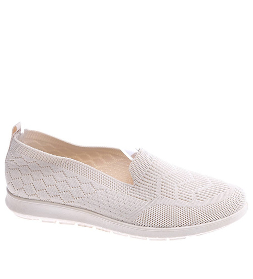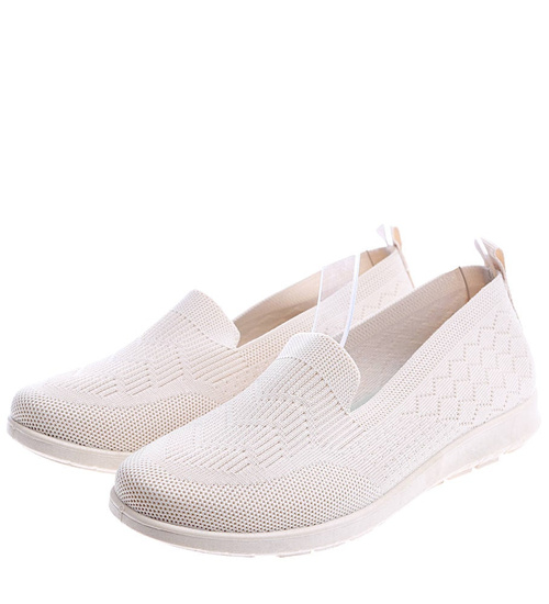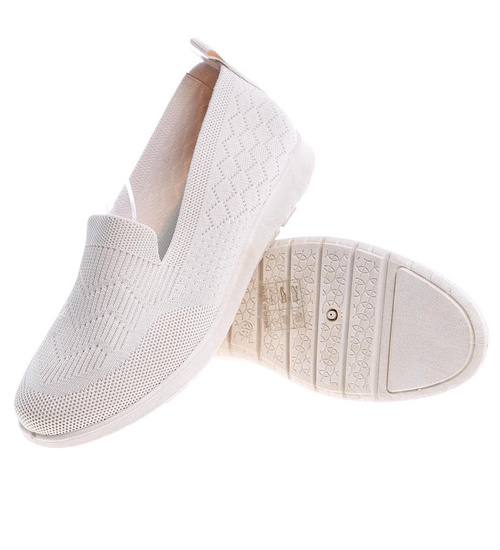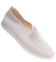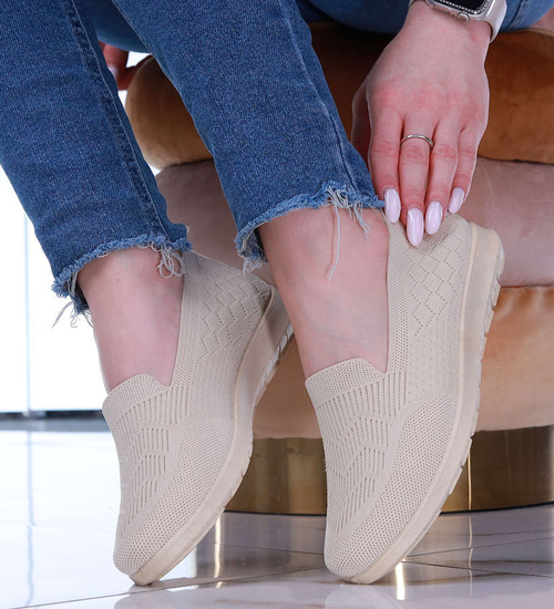- Wsuwane damskie buty sportowe wykonane z miękkiego materiału w kolorze beżowym.