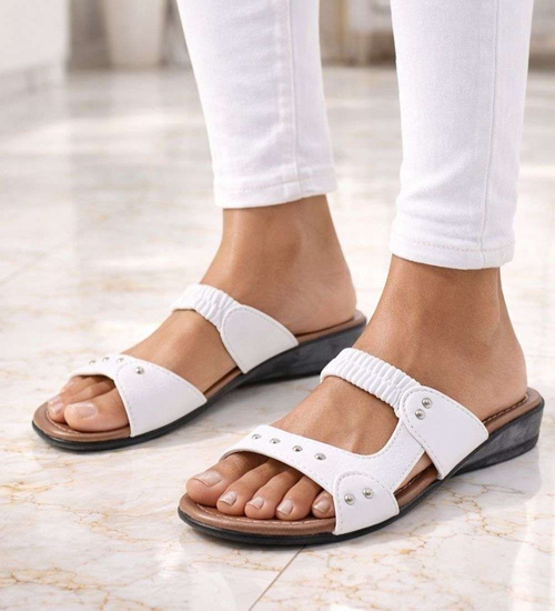 Białe damskie klapki na płaskim obcasie /G5-1 14187 T097/