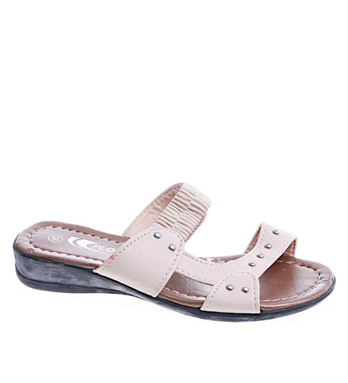 Beżowe damskie klapki na płaskim obcasie /F2-2 14186 T097/
