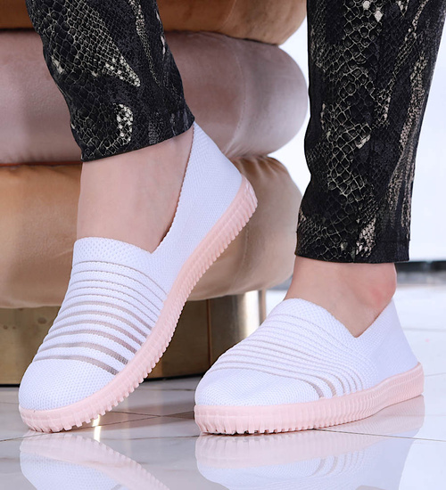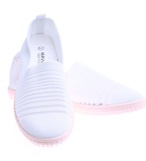 Wkładane białe damskie buty sportowe /B3-2 14212 T233/