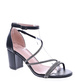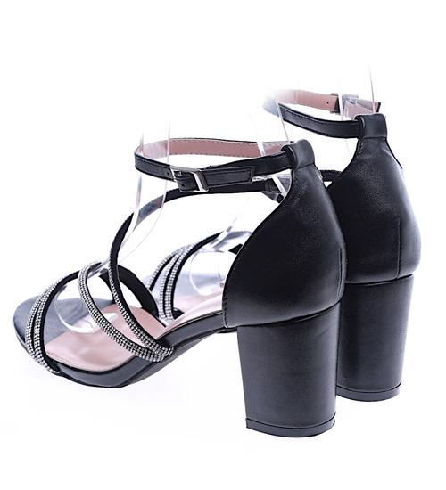 Przepiękne czarne sandały na grubym obcasie z cyrkoniami /C5-3 14199 S598/