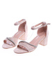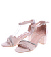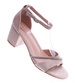 - Sandały wyposażono w gruby, stabilny obcas o umiarkowanej wysokości.