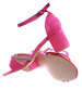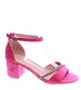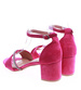 - Różowe damskie sandały wykonane ze skórki ekologicznej zamszowej.