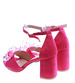 - Różowe damskie sandały wykonane ze skórki ekologicznej zamszowej.