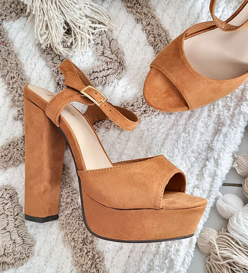 Kamelowe sandały na wysokim obcasie /G1-1 14218 S246/
