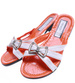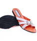 - Praktytczne damskie klapki wykonane z skóry ekologicznej w kolorze pomarańczowo białym.