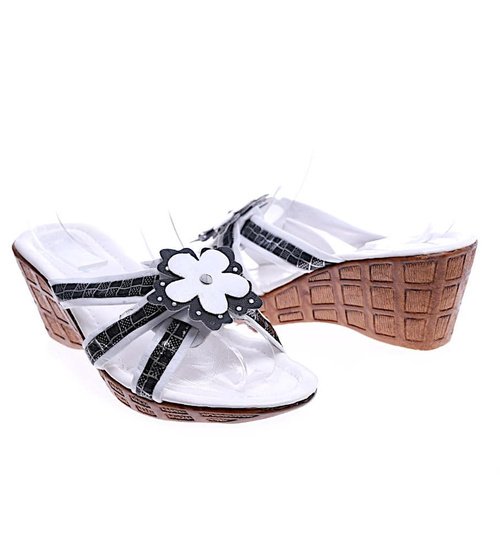 Damskie klapki na koturnie i platformie Biało Czarne /H2 14313 T005/