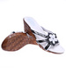 - Damskie klapki wykonane z skóry ekologicznej w kolorze białym z czarnymi dodatkami.
