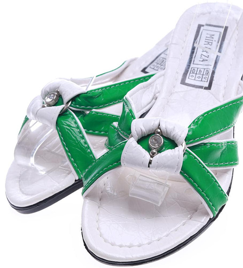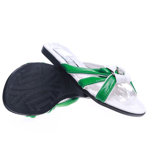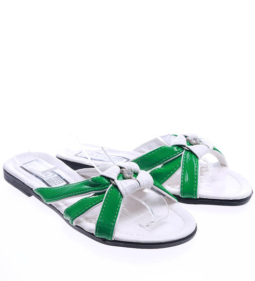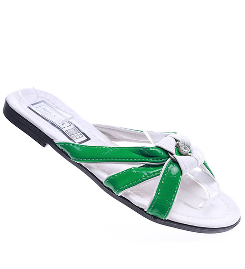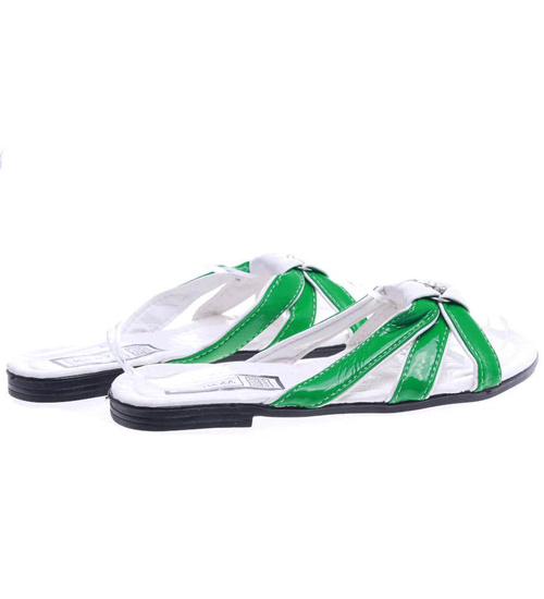 Biało zielone klapki na płaskim obcasie /H2 14343 T005/