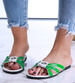 - Praktytczne damskie klapki wykonane z skóry ekologicznej w kolorze biało zielonym.