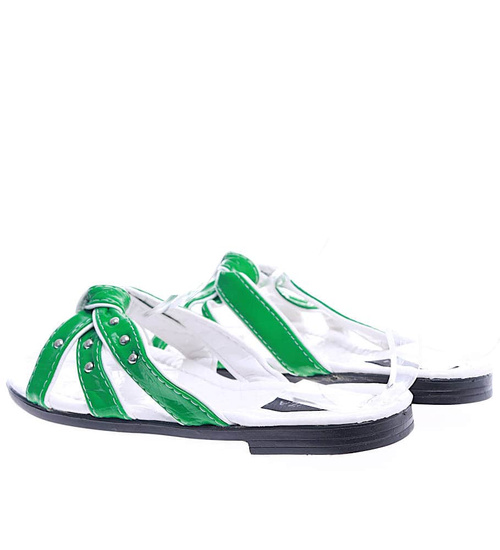 Zielono białe klapki na płaskim obcasie /H2 14349 T005/