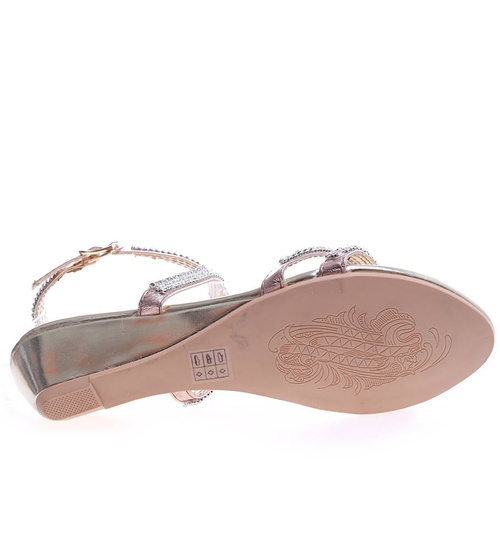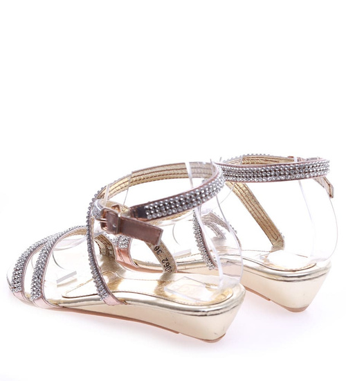 Złote sandały na niskim obcasie /E8-2 14367 S078/