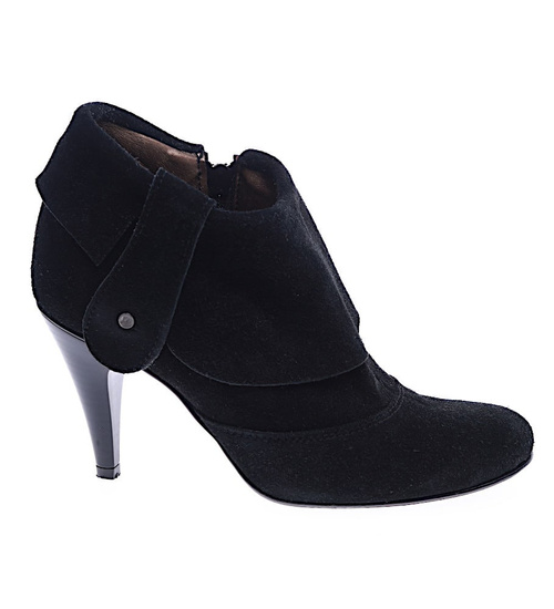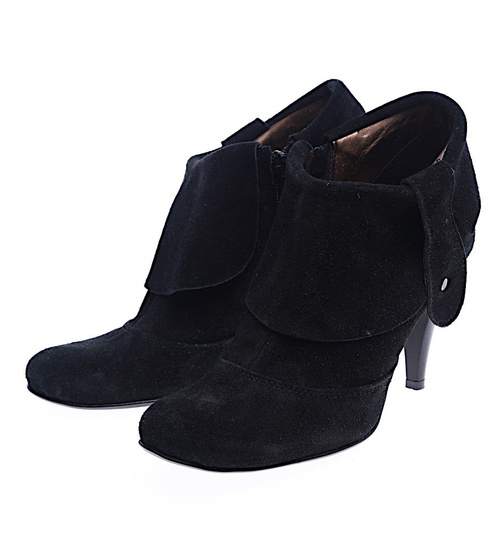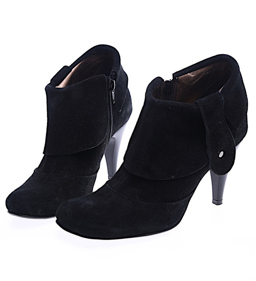 Czarne botki damskie ze skóry naturalnej /H SR463/