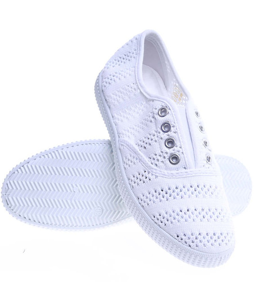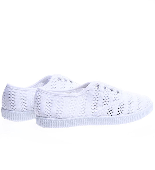 Koronkowe wsuwane białe tenisówki /G3-2 14409 S292/