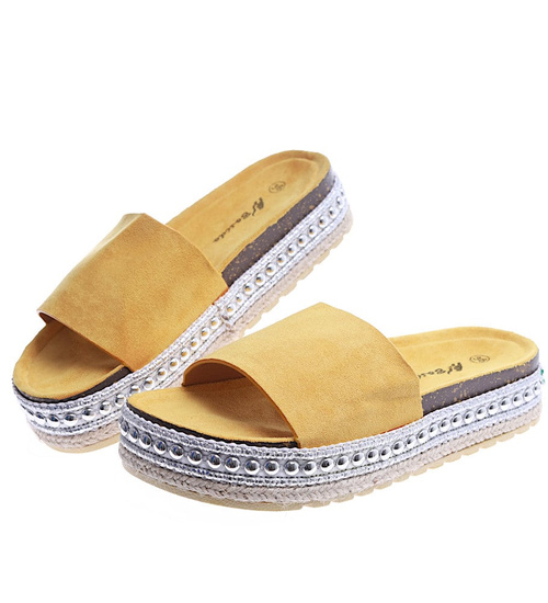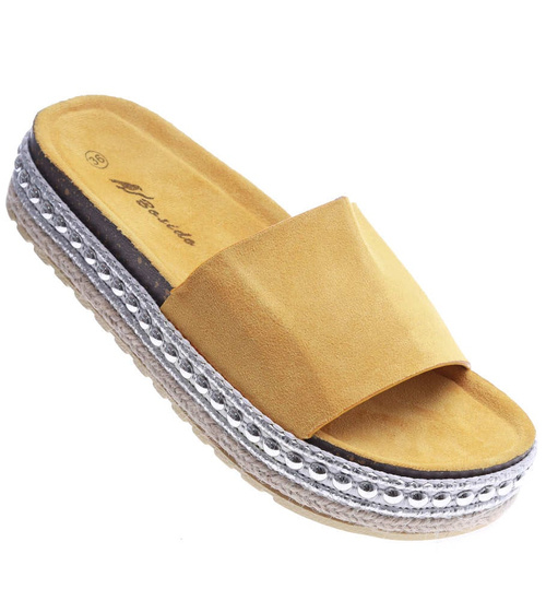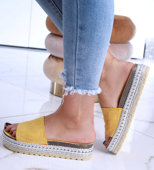 Żółte klapki espadryle na platformie /A6-3 14414 T148/