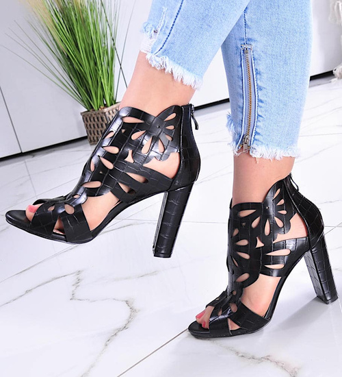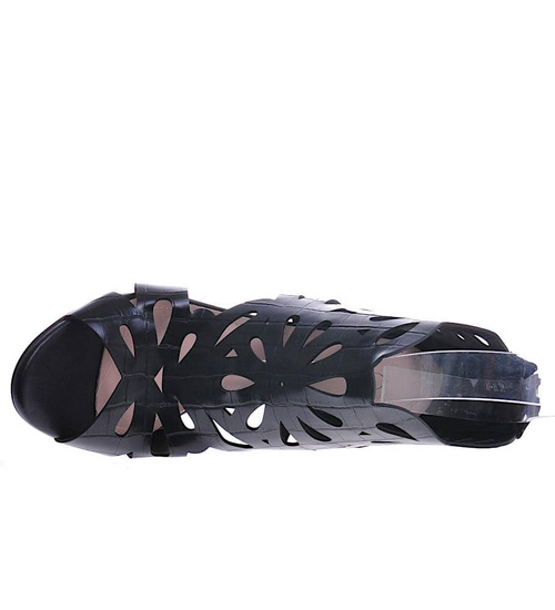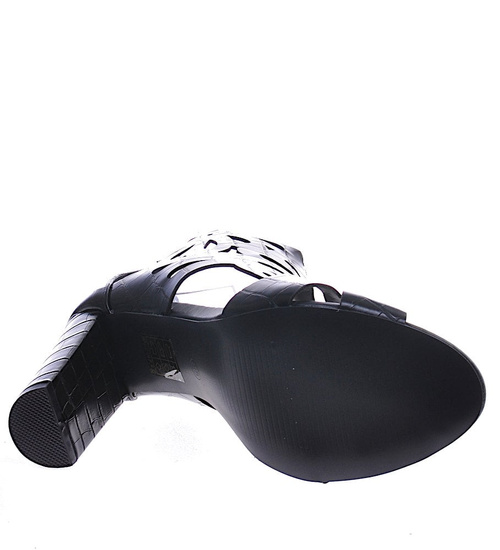 Ażurowe czarne sandały na słupku /D1-3 11337 S294/