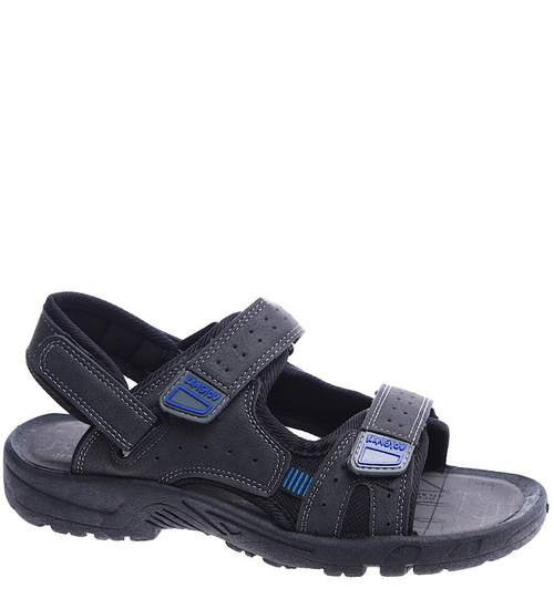 - Czarne chłopięce sandały wykonane z miekkiej skóry ekologicznej w kolorze szarym.