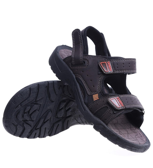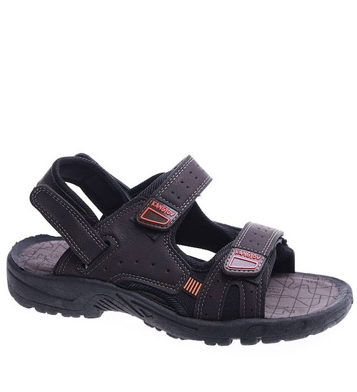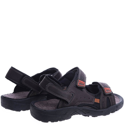 - Czarne chłopięce sandały wykonane z miekkiej skóry ekologicznej w kolorze brązowym.