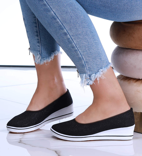 Czarne wsuwane tenisówki na niskim koturnie /C5-3 14448 T232/