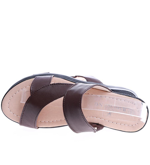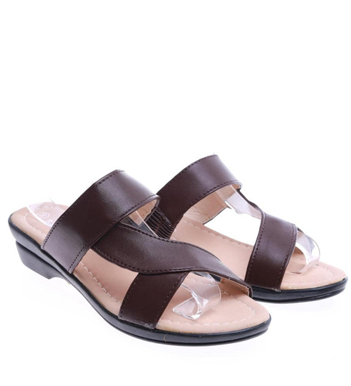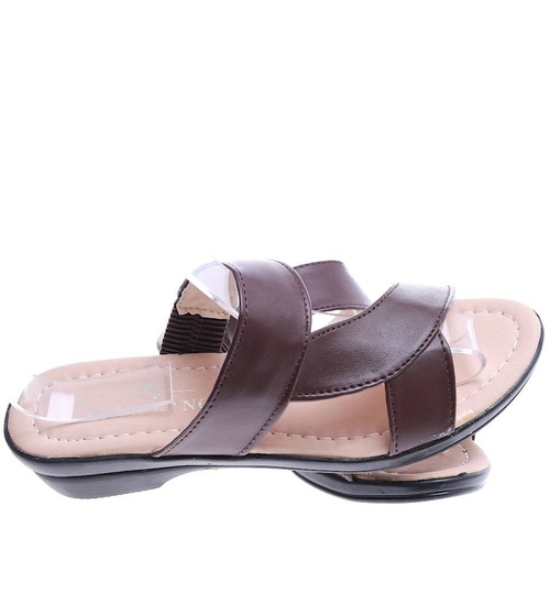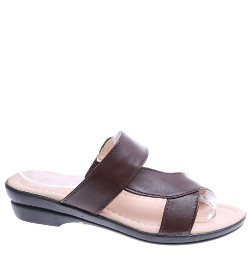 Brązowe damskie klapki na płaskim obcasie /A3-2 14462 T191/