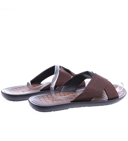 Casualowe męskie brązowe klapki /E8-1 14484 T194/