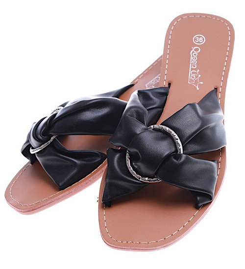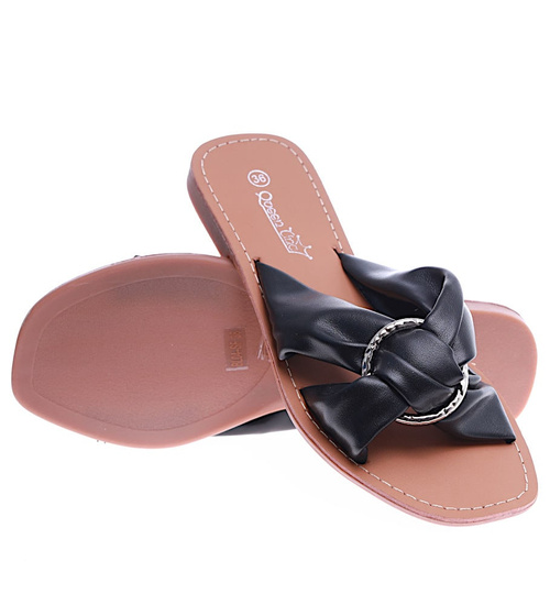 Gładkie czarne klapki damskie /F8-2 14494 T198/