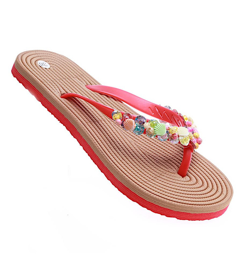 - Beżowo czerwone damskie klapki japonki to idealny wybór na ciepłe, letnie dni.