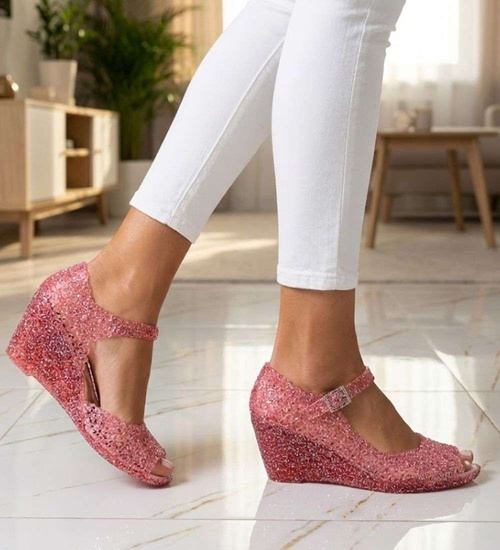 Plażowe sandały meliski na koturnie Ciemny Róż otwarte /H2 14569 T890/