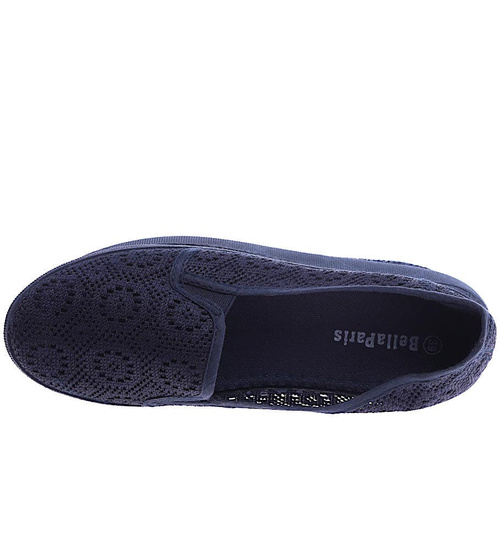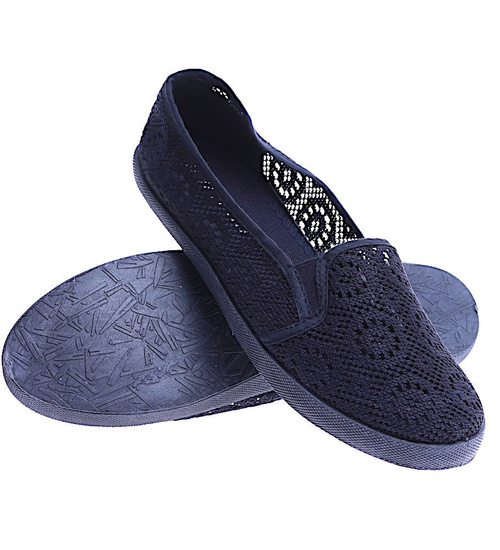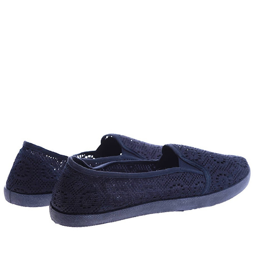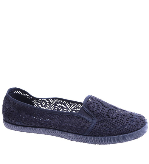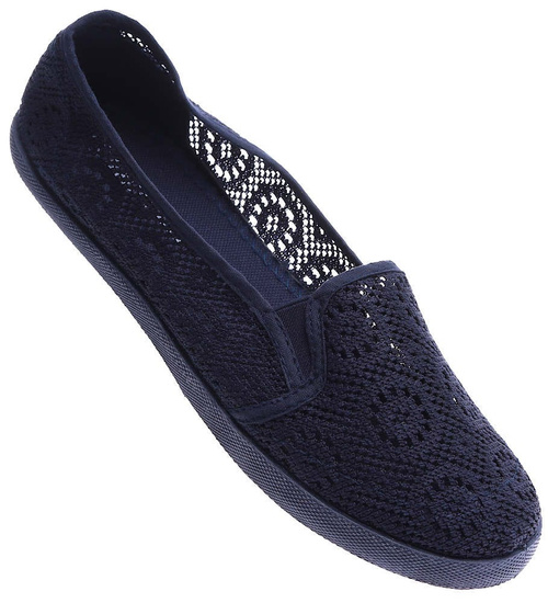 Ażurowe damskie tenisówki slip on z koronki Granatowe /G12-2 14600 S151/