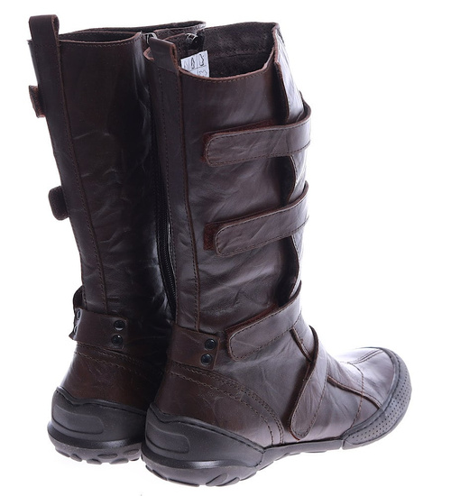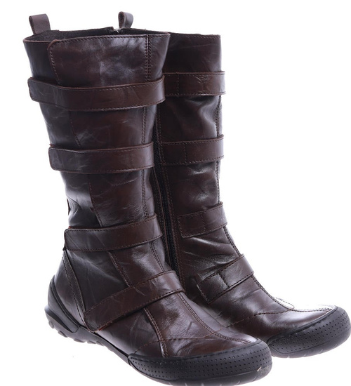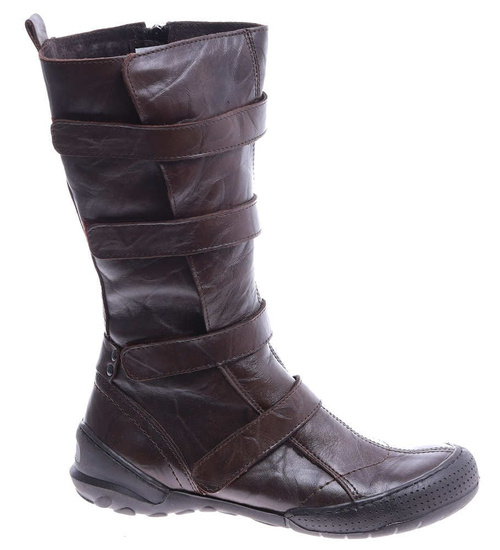 - Wygodne kozaki w kolorze brązowym wykonane z skóry naturalnej.