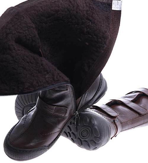 Skórzane zimowe brązowe kozaki /H2 A1-3 SR608/