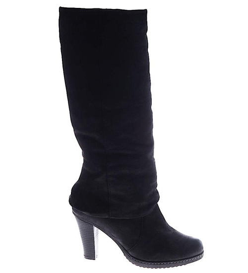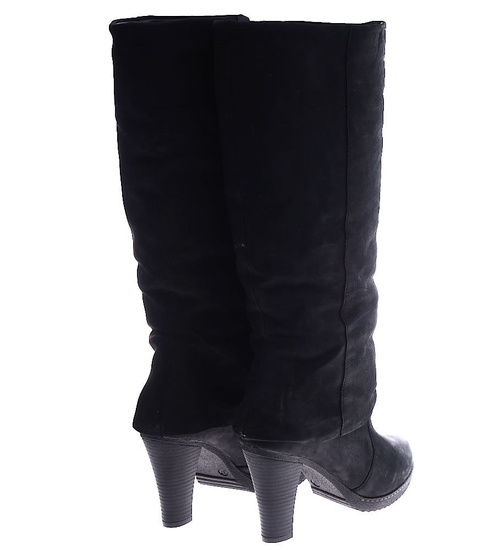 Skórzane czarne kozaki damskie na słupku /H2 A2-1 SR589/