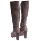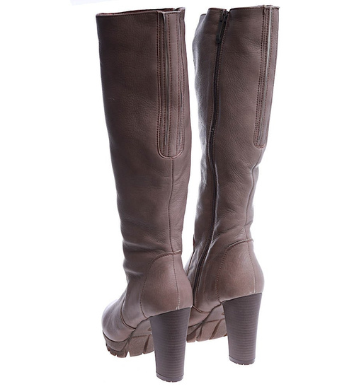 - Eleganckiee damskie kozaki wykonane z skóry naturalnej w kolorze bezowym.