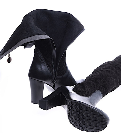 Czarne klasyczne kozaki na obcasie /D2-2 18565 G591/